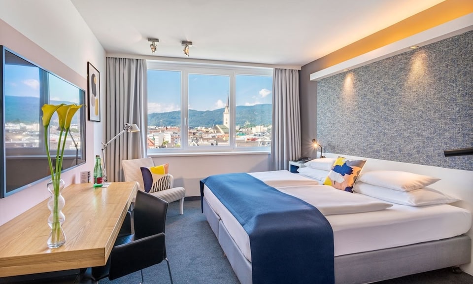 Welcome to voco® Villach, where modern convenience and thoughtful design combine in a beautiful location by the River Drau. Moments from Villach’s historic Altstadt, our contemporary hotel is an easy walk from the railway station and close to both Klagenfurt (KLU) and Ljubljana (LJU) airports, but still just a short drive from the pristine lakes and mountains of Carinthia. With stunning city views our stylish Standard rooms all come with considerate voco™ extras, including premium bedding, aera