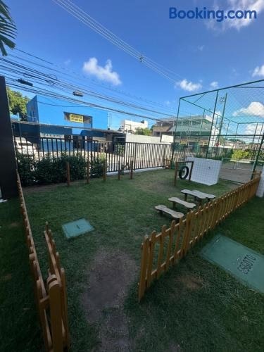 Hanya terletak 15 km dari Pusat Perbelanjaan Guararapes, Apartamento mobiliado confortável menawarkan akomodasi di Recife dengan akses ke kolam renang outdoor, tempat fitness lengkap, serta klub anak-anak.