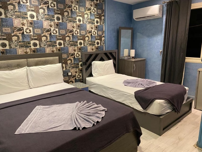 City Views and TerraceEnjoy stunning city views from our terrace at Hostel Sunset Down town. Relax and unwind while taking in the vibrant sights of Cairo. Perfect for a morning coffee or an evening wind-down.Convenient AmenitiesOur 24-hour front desk and airport transfers ensure a hassle-free stay. Benefit from our shared kitchen and free WiFi, making your stay comfortable and convenient.Scenic Surroundings and BreakfastWake up to mountain views from select units and balconies in all rooms. Indulge in a delicious continental breakfast each morning, setting you up for a day of exploring Cairo's landmarks.Book your stay at Hostel Sunset Down town now for an unforgettable experience in the heart of Cairo.