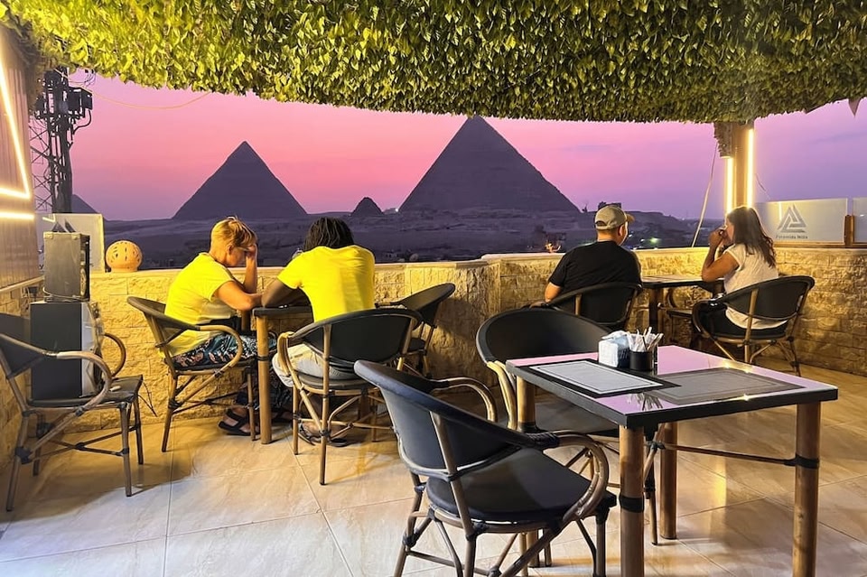 Sphinx and pyramid's View di Kairo mempunyai akomodasi bintang 4 dengan taman dan bar. Fasilitas yang tersedia di akomodasi ini adalah restoran, layanan kamar, resepsionis 24 jam, dan WiFi gratis di seluruh area akomodasi.