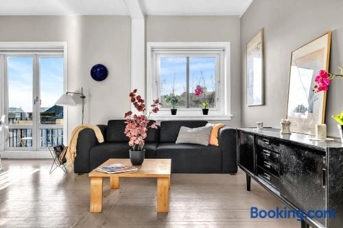 Boasting a patio with city views, a garden and a terrace, Classic Super central - Balcony - 6 pers can be found in Oslo, close to The Royal Palace and 5.3 km from Akershus Fortress. The property is situated 6.5 km from Sognsvann Lake, 1.