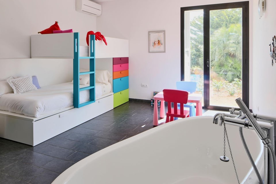 Private Pool and Mountain ViewsExperience luxury at Sa Plana d´en Miquel with your own private pool, balcony, and stunning mountain views. Relax and unwind in style.Fully Equipped VillaThis spacious 4-bedroom villa comes with a fully equipped kitchen, fireplace, and modern amenities including a dishwasher, oven, and washing machine. Enjoy the comfort of home away from home.Outdoor Dining and GardenTake advantage of the barbecue facilities and dine al fresco on the private patio. Explore the beautiful garden and soak in the serene surroundings.Book now to experience the perfect blend of comfort and luxury at Sa Plana d´en Miquel in Sant Joan de Labritja.
