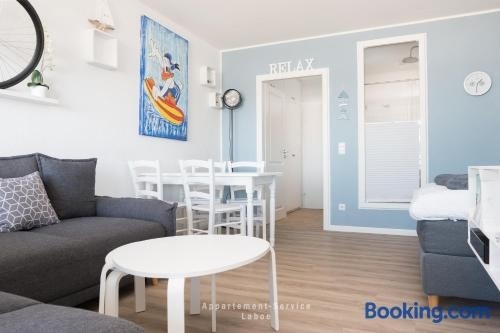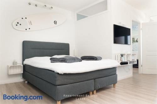 Meerblickbude is set in Wendtorf, 20 km from Kiel Central Station, 21 km from Sophienhof, and 21 km from Wunderino Arena. It is located 5.6 km from Naval Memorial and Submarine Museum and features a lift.